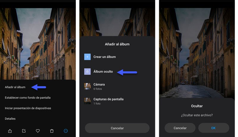 También puedes realizar este proceso de cualquier imagen. Solo elige la imagen y selecciona “Álbum oculto”.