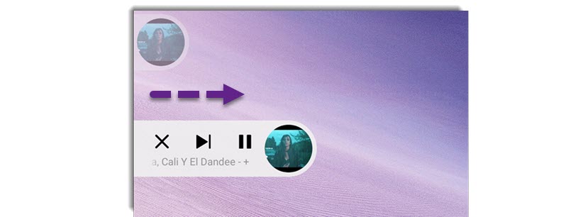 Verás un mini reproductor flotante que tiene las opciones básicas para pasar la canción o parar la reproducción. Puedes moverlo a cualquier lugar de la pantalla mientras te desplazas por cualquier sección del móvil o consultas otras aplicaciones.