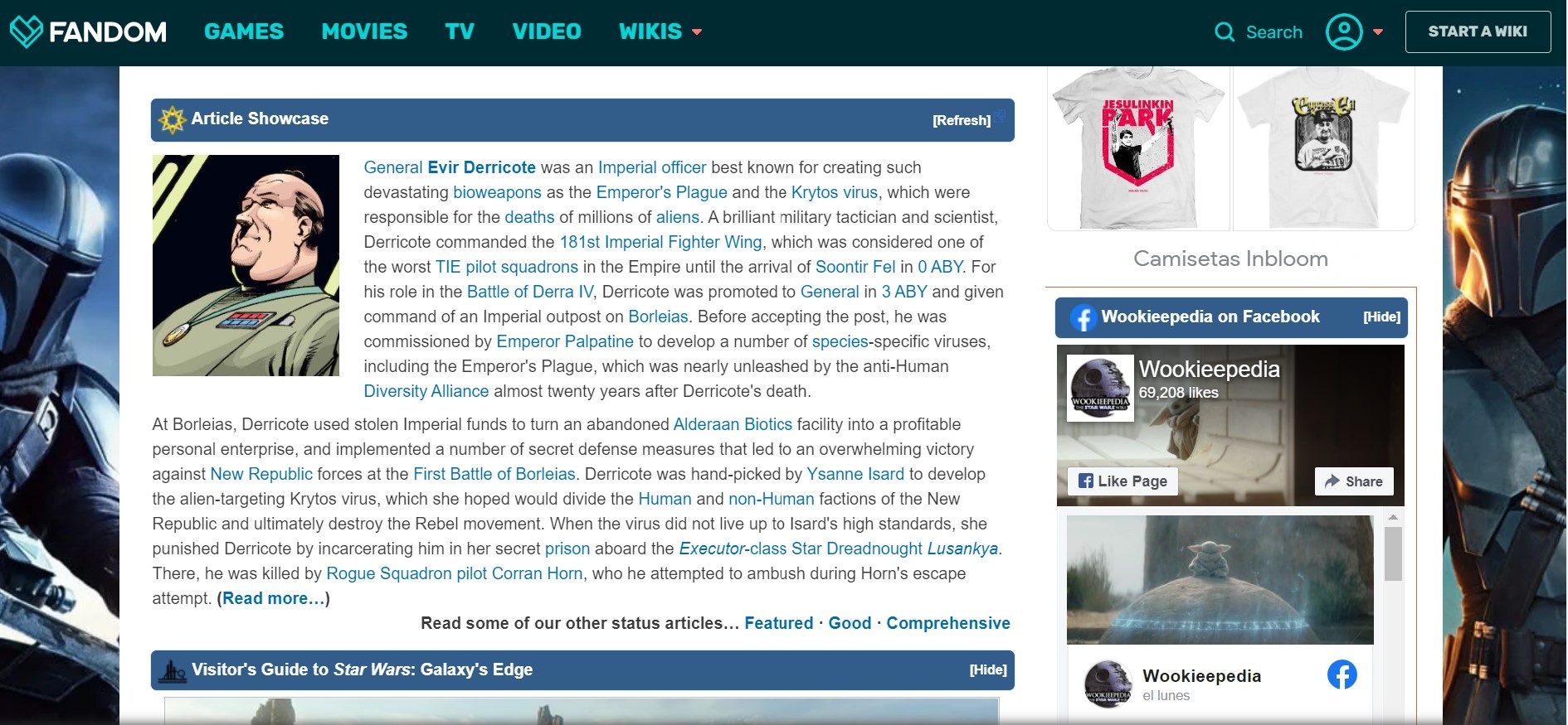 No podía faltar en esta lista el sitio oficial del fandom más duro de Star Wars. Wookieepedia: The Star Wars Wiki es el equivalente a la Wikipedia, una enciclopedia online en la que podemos obtener toda la información sobre el universo de Star Wars y cualquier asunto relacionado con él. El logotipo de esta web es una amalgama la Estrella de la Muerte II y el logo de Wikipedia. Tiene artículos tremendamente completos que alcanzan hasta 60.000 palabras y su cometido es rastrear todo en el universo de Star Wars y mantener la información constantemente actualizada.