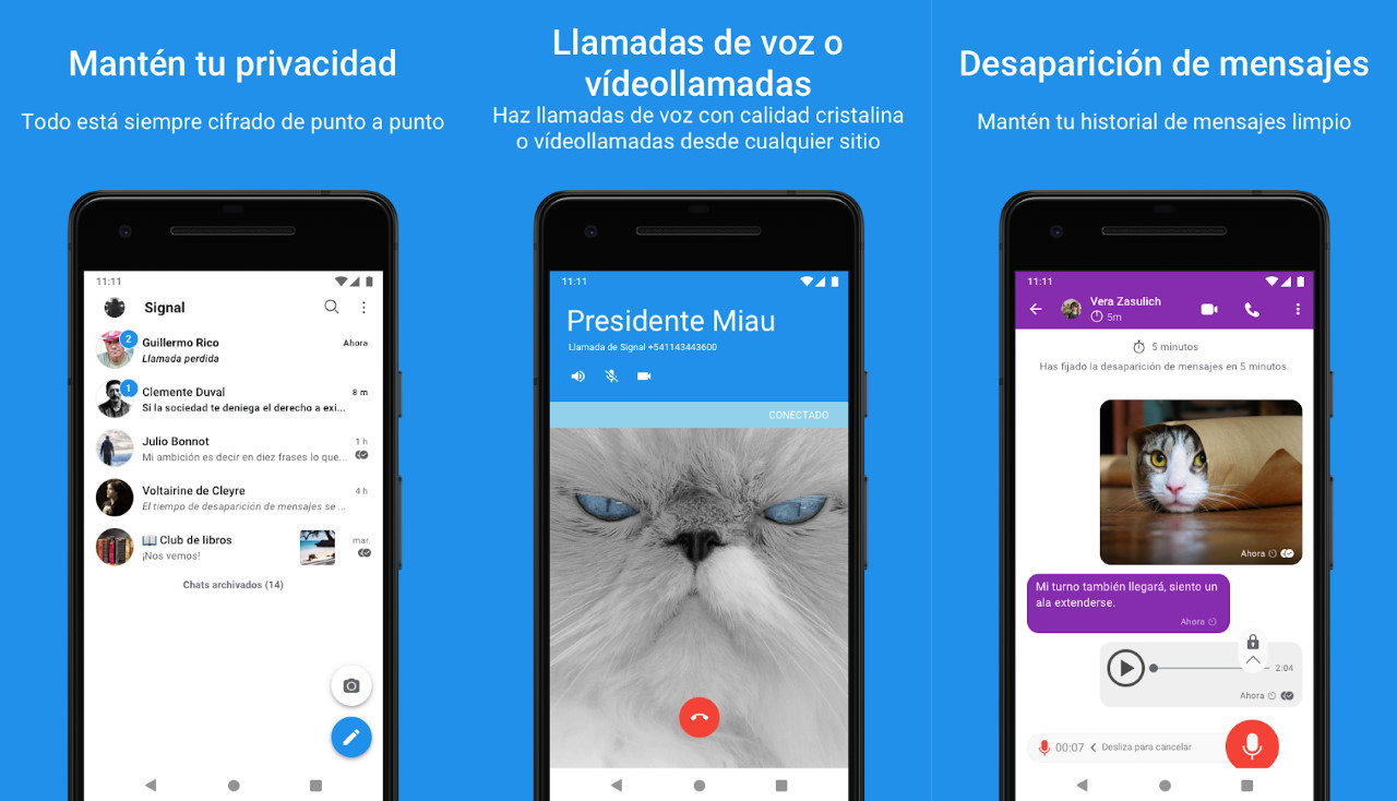 No tendrás que crear una cuenta, simplemente descargar la app e introducir tu número de teléfono. Signal da también opciones como usarla como la aplicación de SMS por defecto en tu teléfono, en caso de que lo desees. La privacidad es un aspecto clave en esta aplicación, con los chats cifrados de extremo a extremo, pudiendo enviar incluso mensajes temporales que se borran automáticamente luego. Todo lo que buscamos en una app de mensajería lo encontramos aquí, de hecho, es una app que puede incluso competir con WhatsApp.