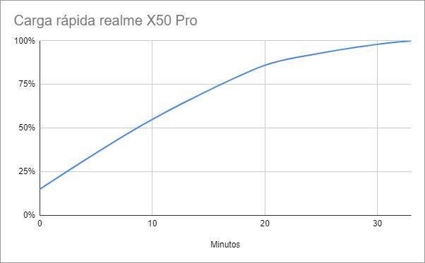 Lo que no incluye el realme X50 Pro 5G es carga inalámbrica, algo que en estos precios empieza a acusarse como una ausencia notoria. ¿Realmente importa con una carga por cable tan rápida? Lo cierto es que sí, porque una tecnología no es excluyente de la otra.